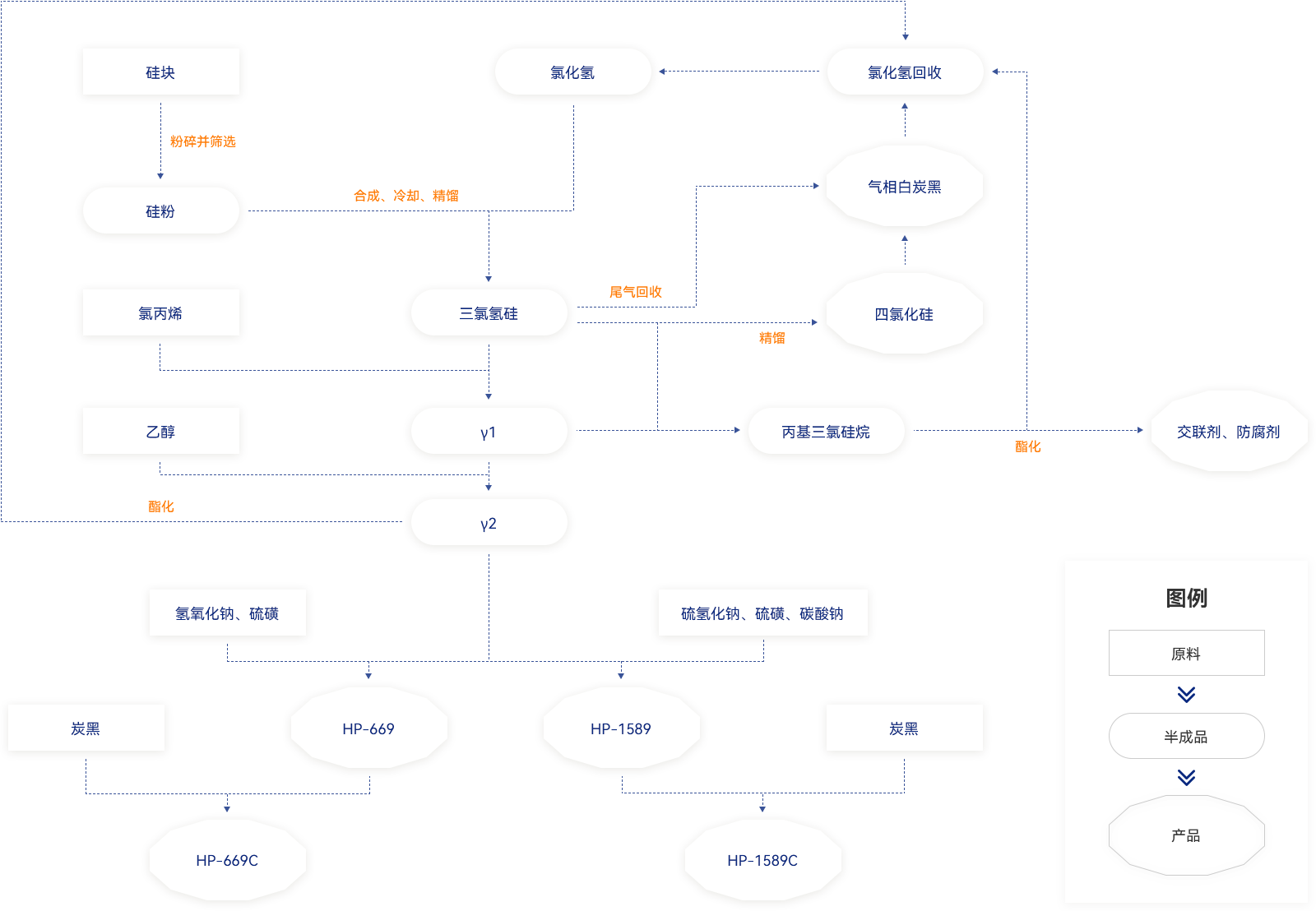 建成了“ 硅塊 - 氯硅烷 - 中間體 - 功能性硅烷 - 氣相白炭黑 ”的完整綠色循環(huán)產(chǎn)業(yè)鏈